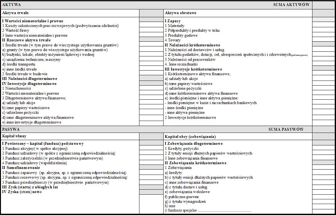 | Obligacje długoterminowe | Powyżej 1 roku | Pasywa długoterminowe |